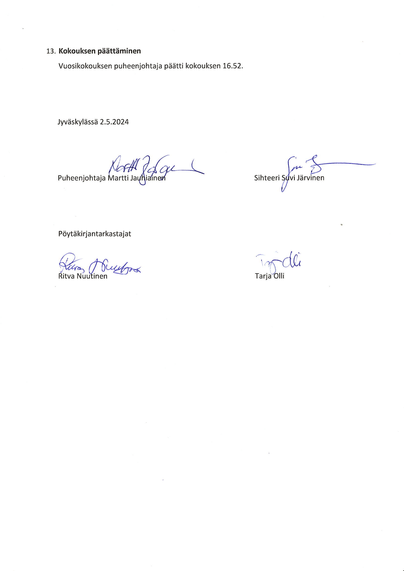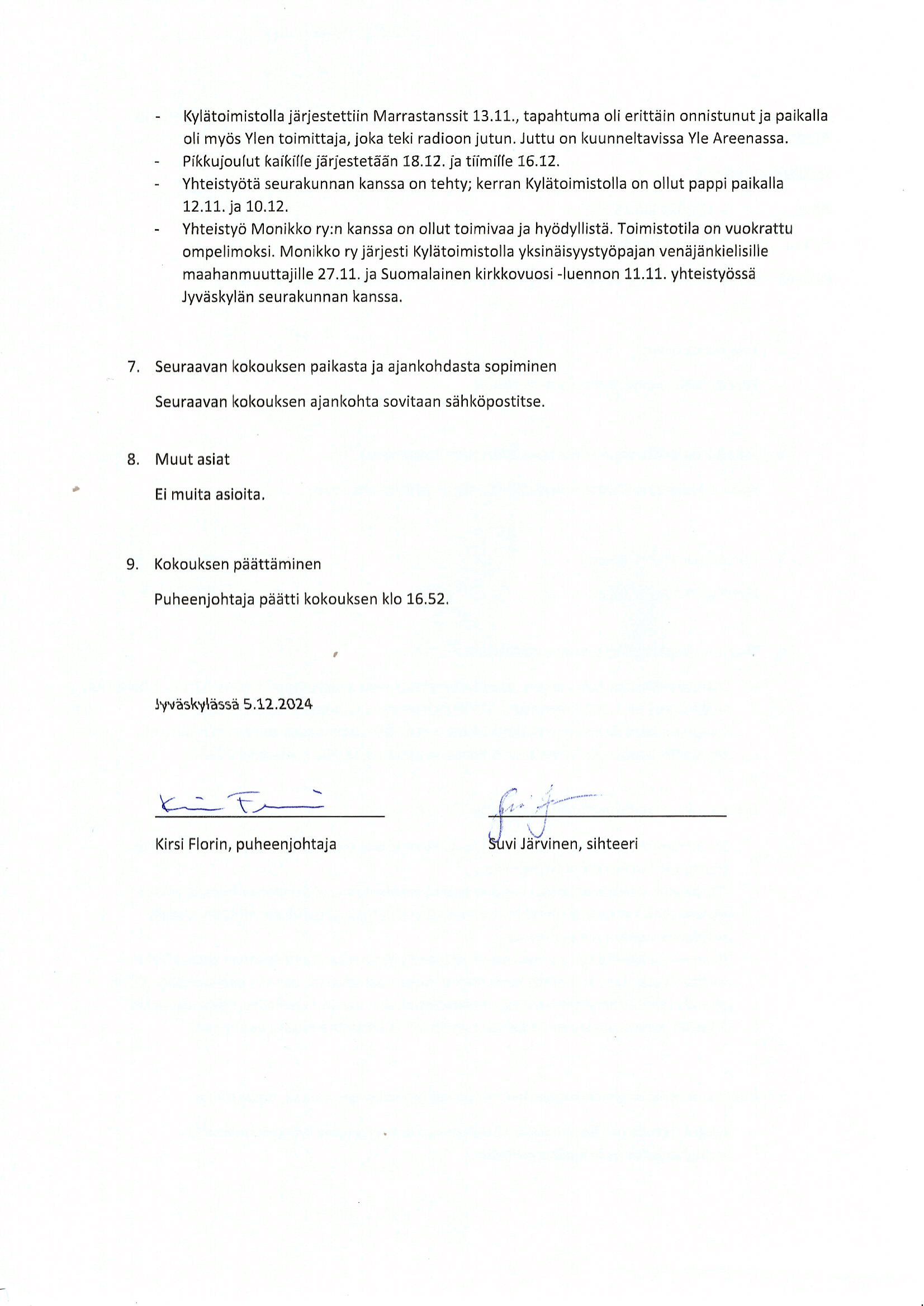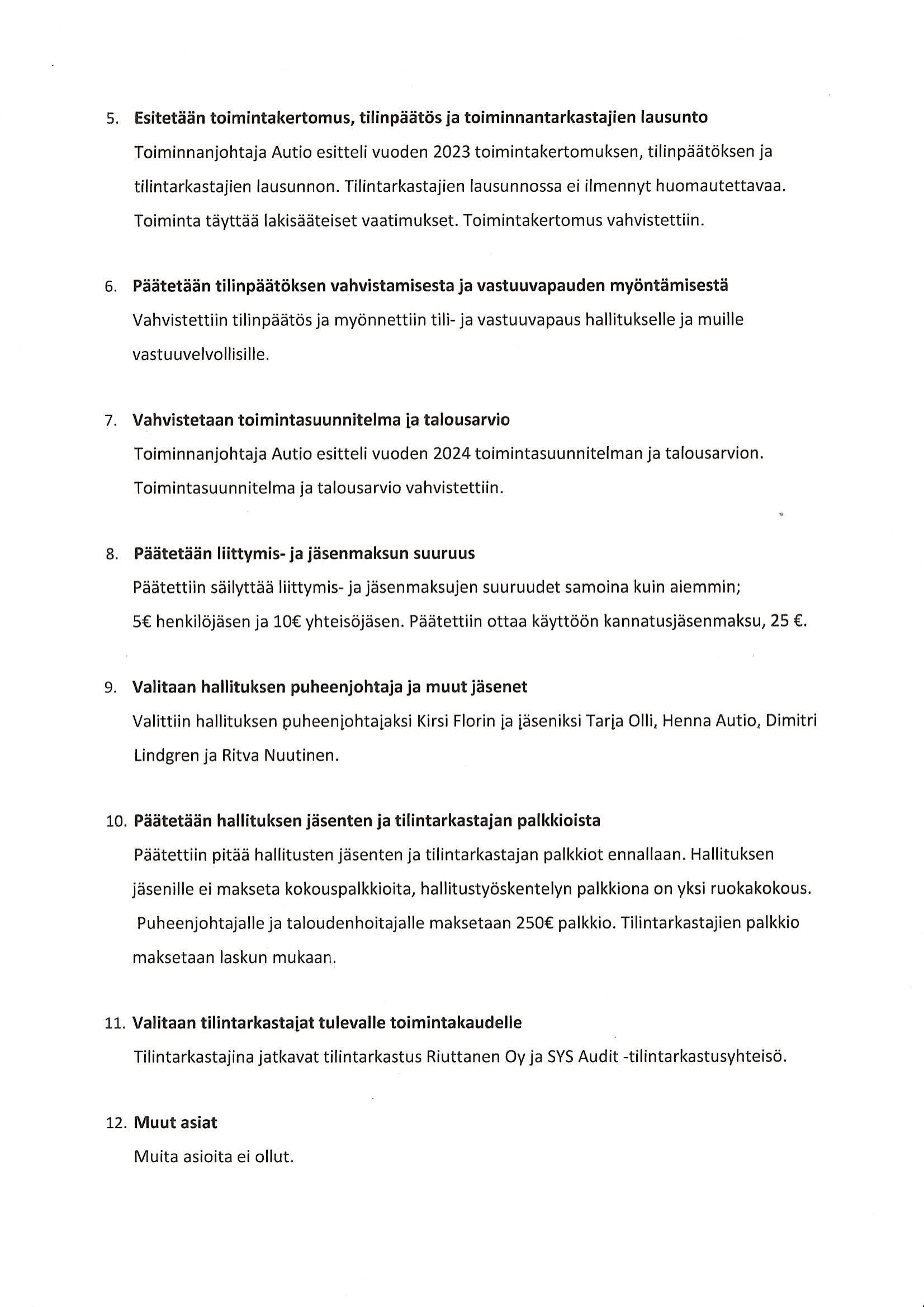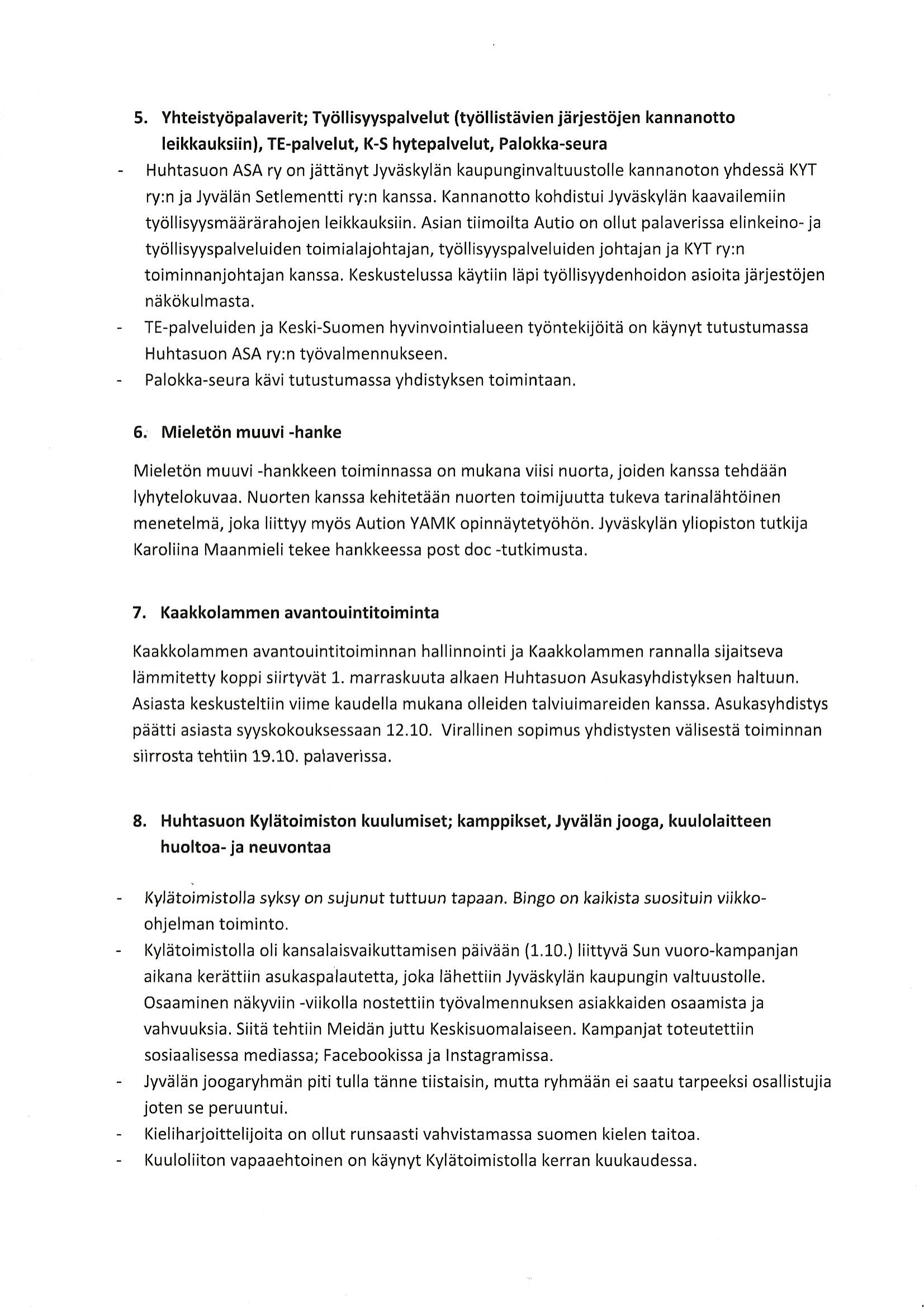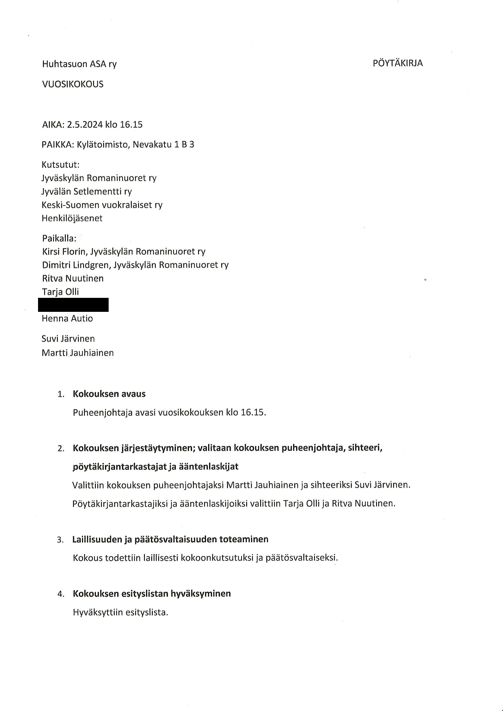 Sähköpostikokous, luettavissa Huhtasuon Kylätoimistolla.